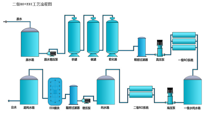 2、運(yùn)用雙極反滲透工藝,脫鹽率高,出水水質(zhì)穩(wěn)定,性能可靠,較大程度確保系統(tǒng)穩(wěn)定運(yùn)行。